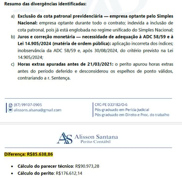 Sou Alisson Santana, Perito Contábil graduado em Ciências Contábeis, pós-graduado em Perícia Judicial e pós-graduado em Direito e Processo do Trabalho. Minha atuação é totalmente focada em cálculos trabalhistas e apoio técnico a advogados, oferecendo precisão, estratégia e segurança em todas as fases do processo.